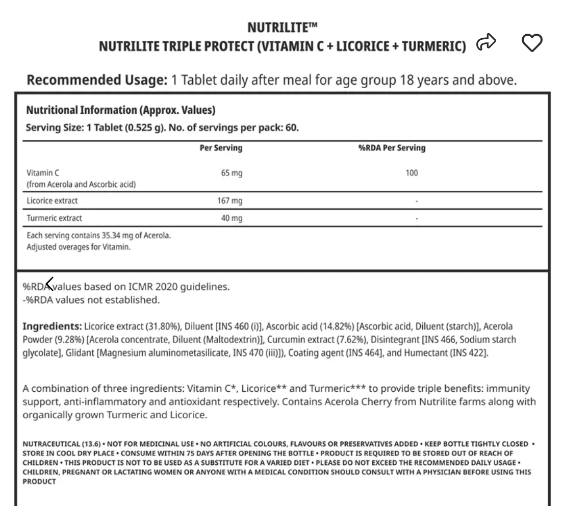 1000 mg equivalent of organic Mulethi (Licorice) in each tablet, with Glycyrrhizin as an active ingredient